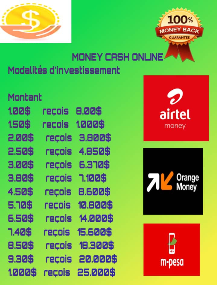 Cette phase consiste à effectuer un investissement à travers un dépôt mobile : *ORANGE MONEY, MOBILE MONEY, MONEYGRAM, WESTERN UNION AIRTEL MONEY M-PESA, PAYPAL, BINANCE, TRUST,ETC..*